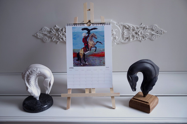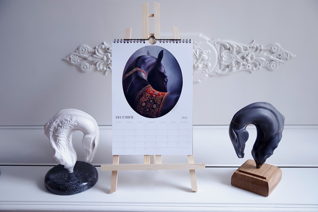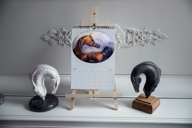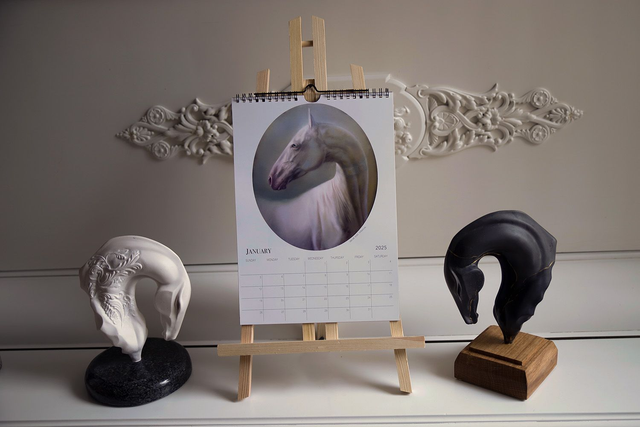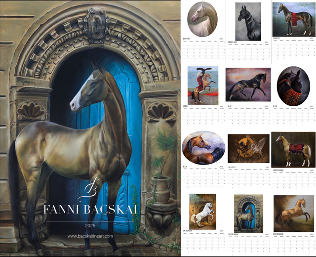One beautiful equestrian painting for each month, with 1o Akhal-Teke and 2 Arabian horses